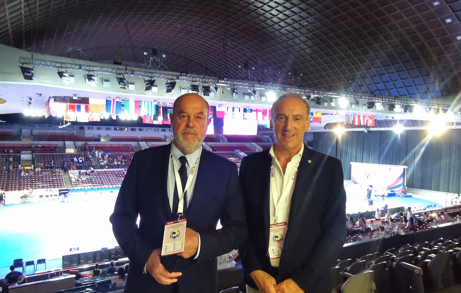 La manifestazione sia è aperta, nella giornata di venerdì 17 giugno, con la sfilata di tutte le nazioni e degli atleti difronte ad un numeroso pubblico ed al Presidente della WKF (World Karate Federation) Antonio Espinosa (in foto insieme al presidente Fesam Mazza).